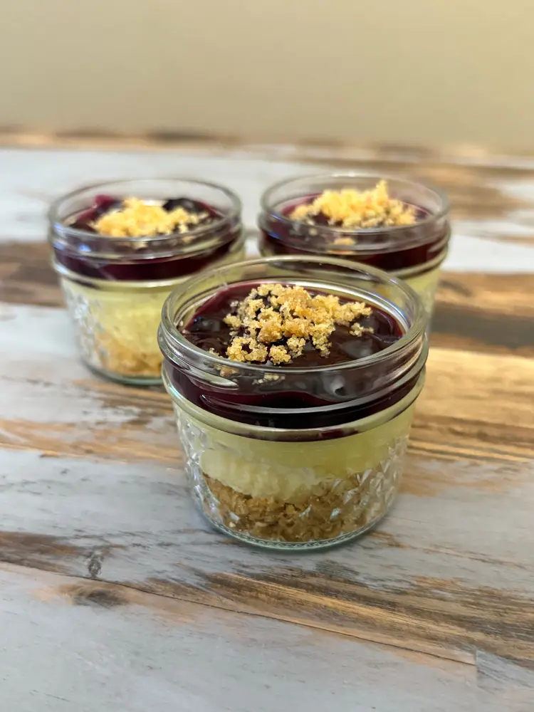 Tart and creamy lemon curd balanced by a perfectly sweetened blueberry compote creating a delightful bright and zesty flavor combination.