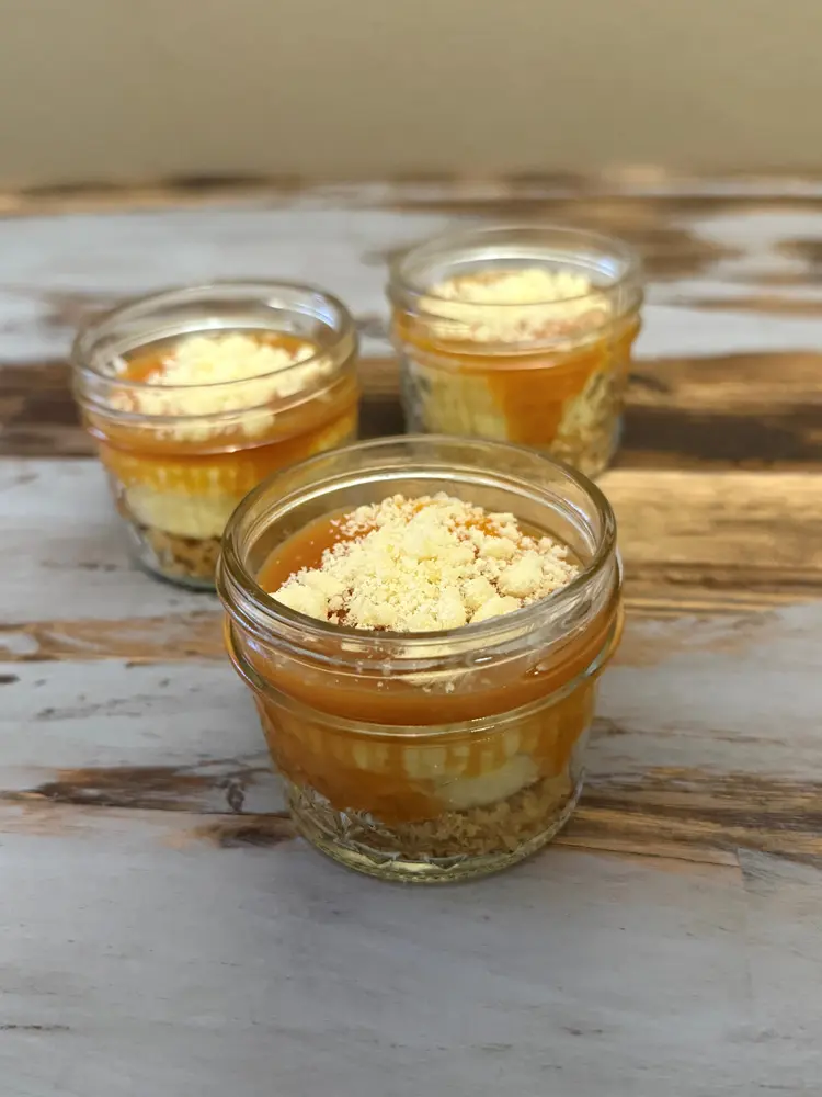 Always made from scratch – a luscious smooth mix of sweet and salty golden caramel topped with buttery shortbread cookie crumbles for the perfect crunchy-sweet bite.